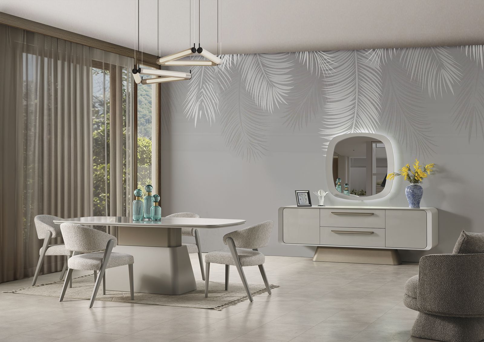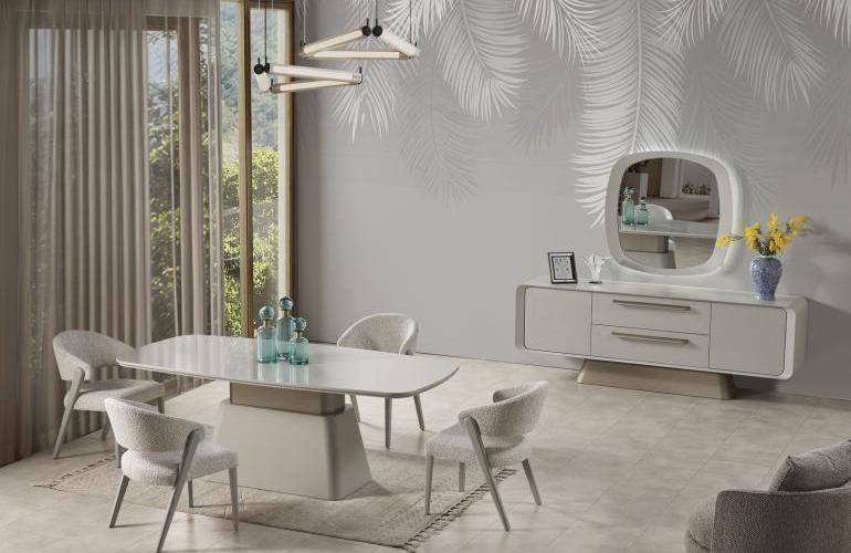 8.777x9Taksit 129.000₺ 180.000 ₺YEMEK ODASI TAKIMI: Konsol ,konsol aynası, yemek masası ve 6 adet sandalyelidir.
