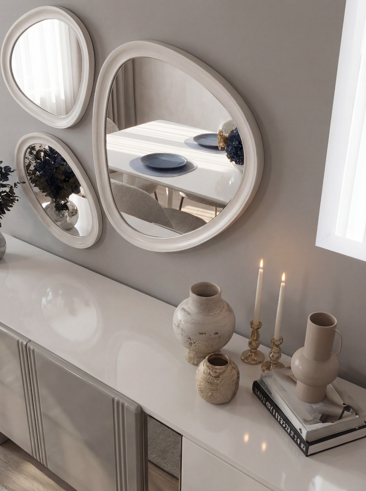 YEMEK ODASI TAKIMI: Konsol ,konsol aynası, yemek masası ve 4 adet elmas sandalyelidir.
